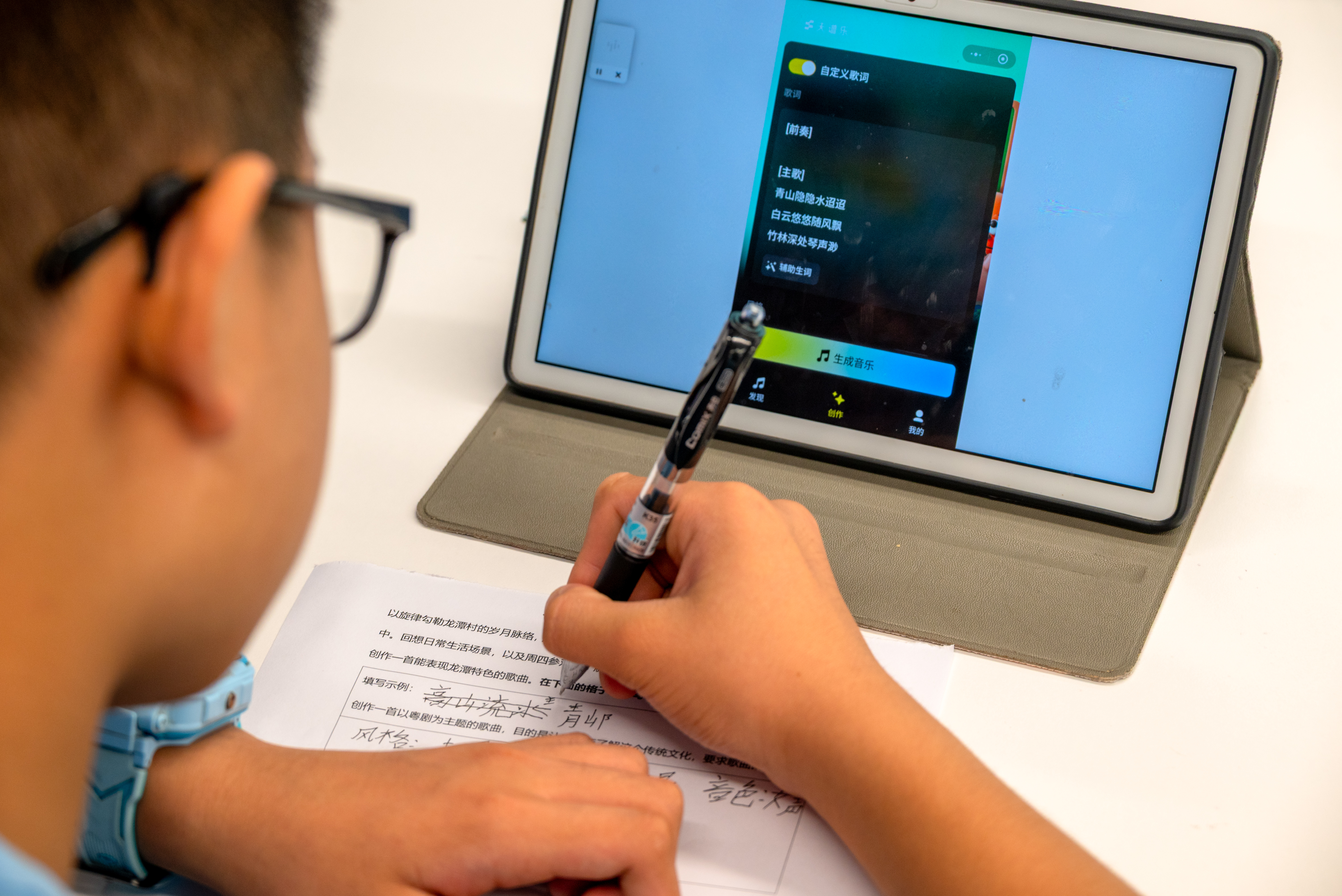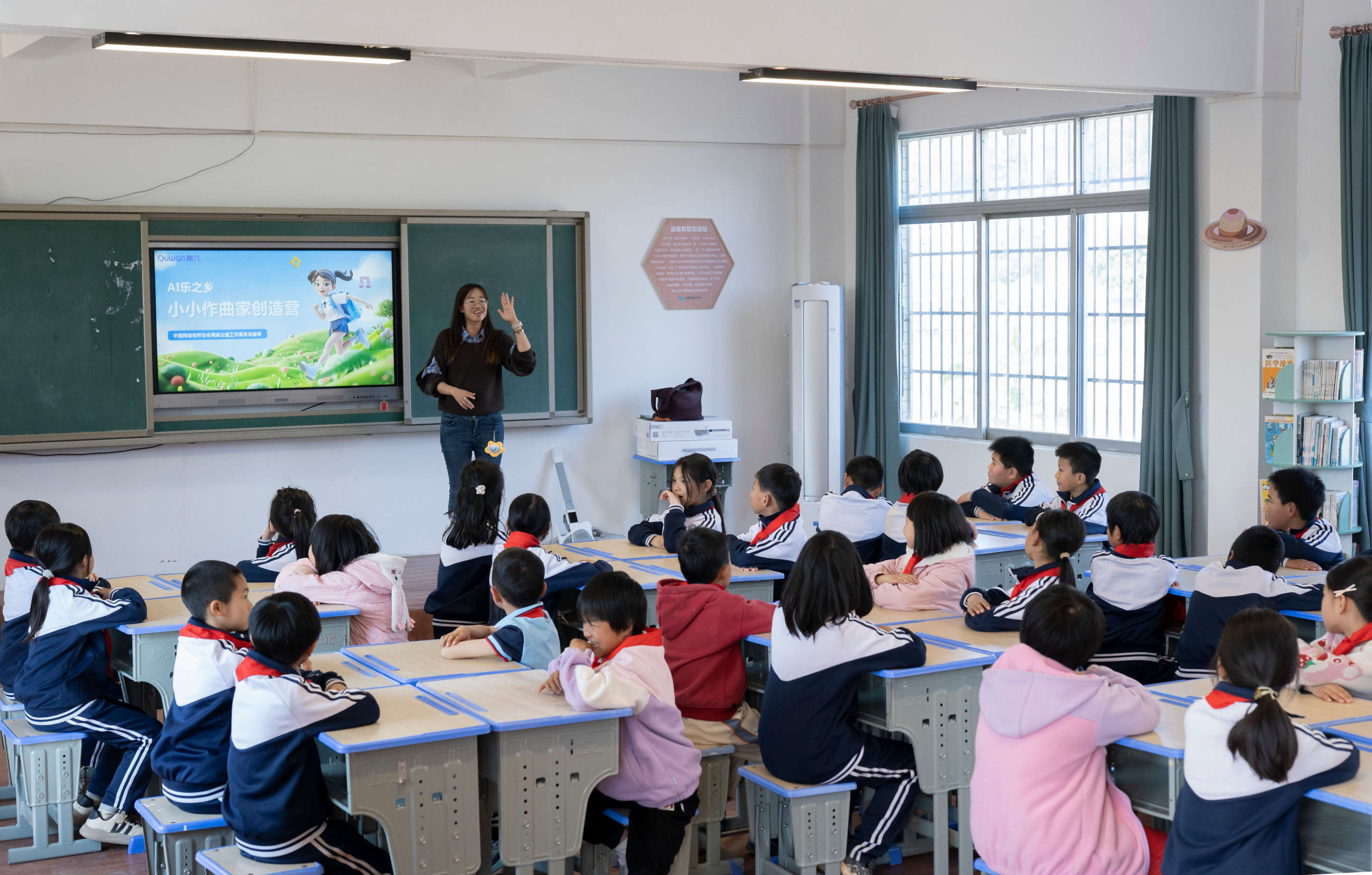 孩子的创造力,往往在接触到新事物时迸发出惊人的力量。而真正有温度的AI普惠,不是单向的工具输送,而是让技术扎根本土,催化和激活文化的生命力。 韶关洪山镇的一个小男孩在上完AI音乐课程后,成了当地小有名气的“AI推广官”。他主动把学到的知识分享给隔壁村做暑期实践的大学生,大学生们试用后发现这套课程比传统教学更简单、更受孩子欢迎,便邀请小男孩一起授课。 “他教得有模有样的。”当地社工的话语里满是欣慰。回到家,小男孩还教弟弟妹妹使用AI工具,小小的身影,成了村里的“AI小先锋”。