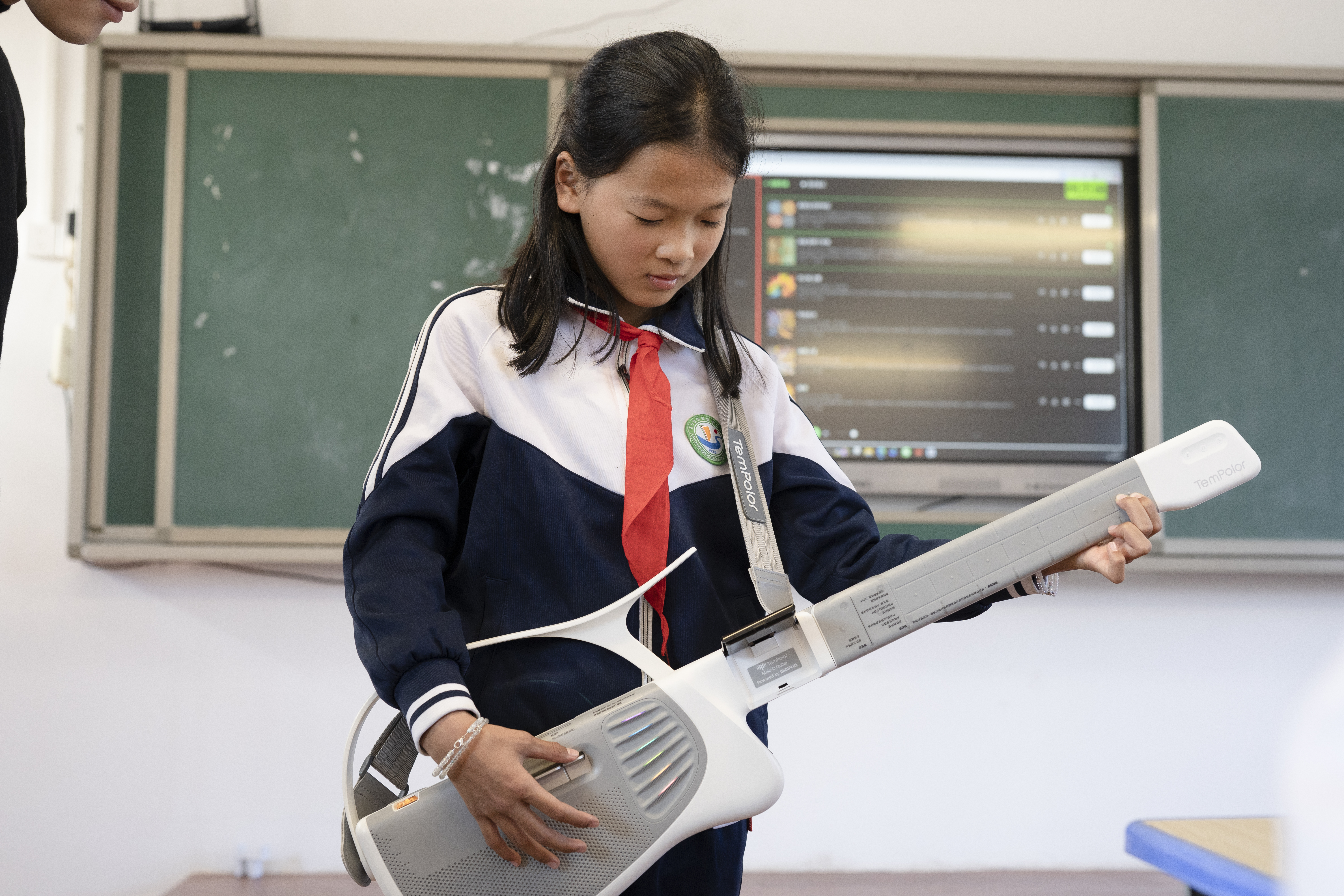 趣丸科技创始人兼CEO宋克第一次走进乡村学校,发现孩子们既缺优质书籍,更缺少连接世界的信息化教育资源,这让他深受触动。“我们想推动教育平权,不只是送书,更要送一个‘看世界的窗口’。” 那一年,“TT语音幸福书屋”项目应运而生。五年过去,这个项目扩展到71个站点,覆盖全国27个城市,累计服务乡村儿童1.5万人,带动近700万用户线上线下参与公益。2025年,它升级为“益趣数智加油站”,配备AI课程、AI硬件和网络教育设备,让乡村孩子不仅能读书,还能近距离接触前沿AI。 同年,趣丸自研的AI智能吉他TemPolor Melo-D上线,第一批产品也赠送到新建的乡村书屋。孩子们第一次亲手触摸到这把能“听懂”指令、辅助创作的吉他,技术与梦想的距离,被无限拉近。